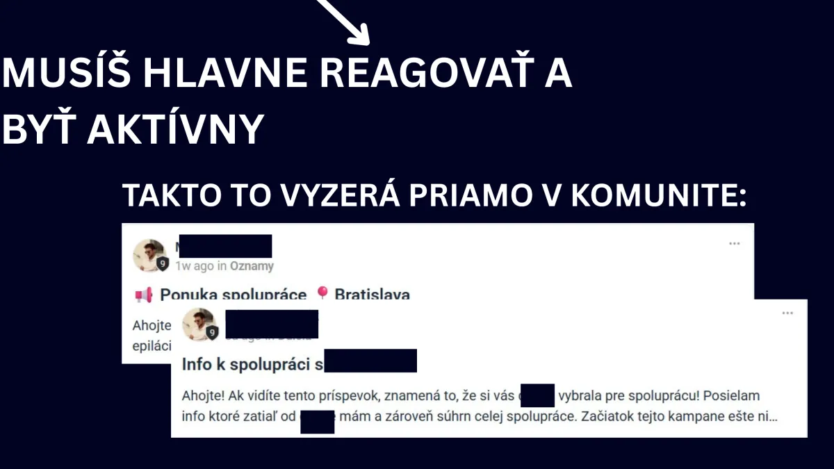V INÝCH KOMUNITÁCH A KURZOCH TI NIKTO NEPONÚKNE REÁLNE SPOLUPRÁCE. NECHÁVAJÚ TO VŠETKO NA TEBE A TY LEN PLATÍŠ ZA KNOW-HOW. MY ŤA V TOM VŠAK